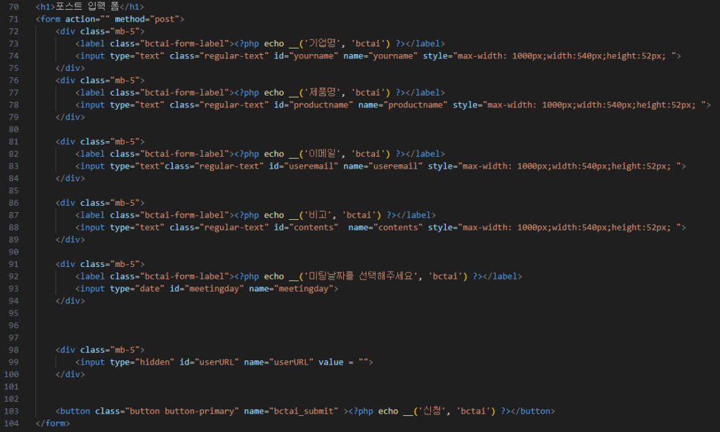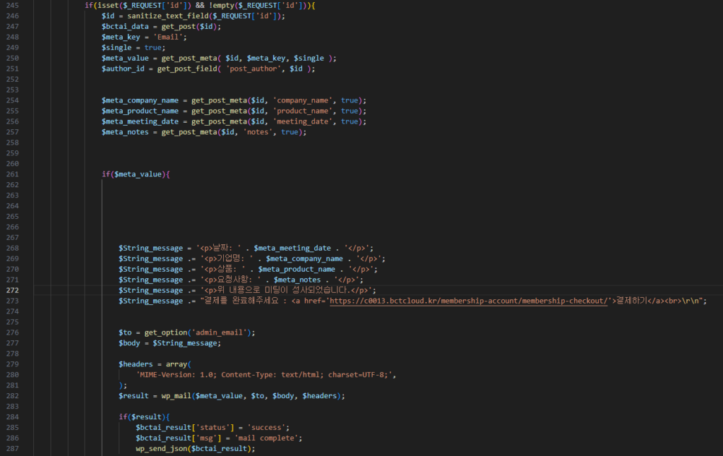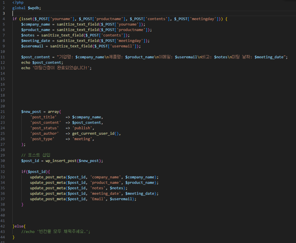 미팅신청 폼 작성 후 워드프레스 custom post type (meeting) 으로 저장
